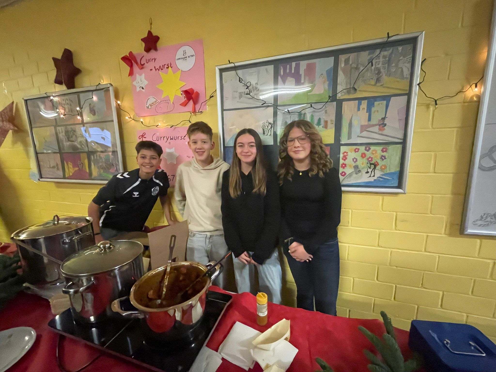 Zudem gab es eine Rundum-Verpflegung – von selbstgemachtem Punsch über Currywurst bis hin zu Kuchen und vielem mehr. Die Schülerinnen und Schüler sowie die beteiligten Lehrkräfte sorgten gemeinsam dafür, dass für jeden Geschmack etwas dabei war und die festliche Atmosphäre auch kulinarisch spürbar wurde.