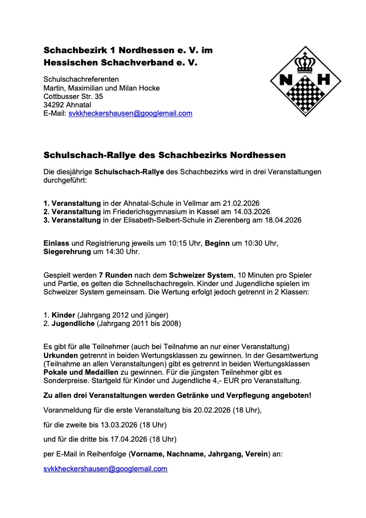 Einladung zur Schulschach-Rallye